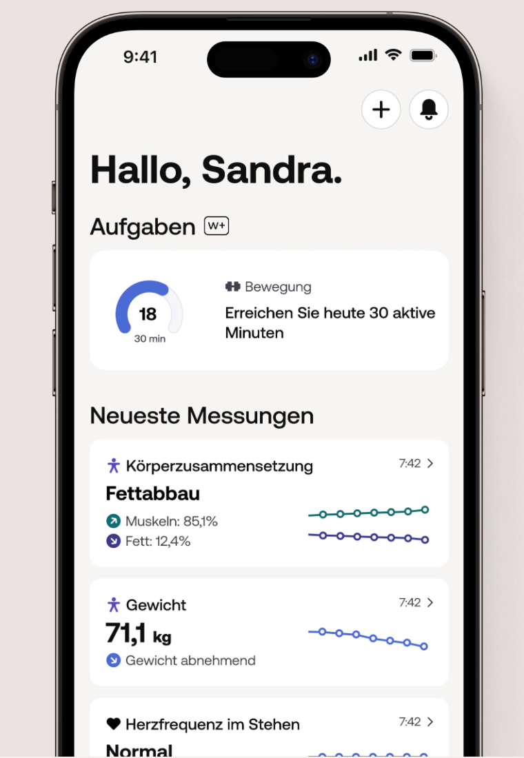 Mit einem GLP-1-Rezept hast du dich für deine Gesundheit entschieden – eine bedeutende Investition in deine Zukunft. Aber wahrer Erfolg geht über die Zahl auf der Waage hinaus. Ein schneller Gewichtsverlust kann täuschen und zum mittlerweile berühmten „Ozempic-Gesicht“ führen. Ohne genaue Daten besteht die Gefahr, wichtige Muskelmasse zu verlieren, die für den Stoffwechsel notwendig ist. Eine intelligente Waage von Withings hilft dir dabei, sicherzustellen, dass du Fett verlierst, während deine Muskeln und deine Gesundheit geschützt bleiben.