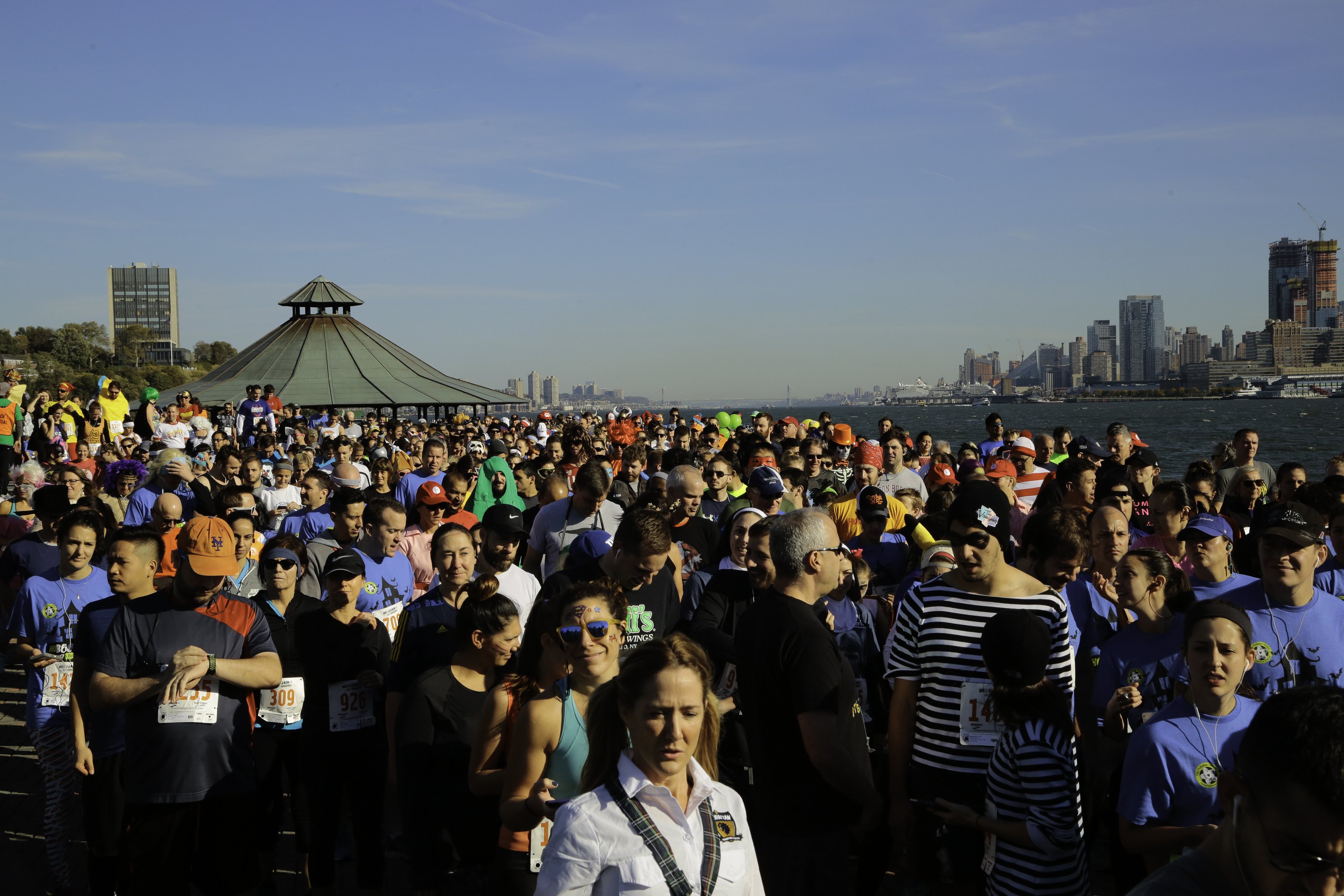 1. C’est une course déguiséeL’événement inclut une course de 1,6km pour les enfants, appelée “Scary Scurry” et le 5km pour les adultes et quelques enfants aventureux. Et oui, pour la plupart, les uns comme les autres courent en étant déguisés. Bien que la course à pied me donne un sentiment de bien-être et d’énergie après coup, je pense que courir au-delà d’un demi-bloc est extrêmement ennuyeux. Quand je cours, je pense à toutes les choses tellement plus intéressantes que je pourrais faire. Ou je me dis : pourquoi ne pas simplement marcher ? Pourquoi tout ce travail ? Personnellement, la motivation n’est pas là. Cependant, au 5km HoBOOken, je prends énormément de plaisir tout au long du parcours, notamment en découvrant petit à petit les déguisements farfelus de mes compagnons de course. Je me souviens d’avoir vu un groupe de jeunes gens en T-shirts blancs déchirés qui disaient “VICTIM” suivi 1mn plus tard d’un groupe de personnes habillées en requins. Ou vous vous retrouvez avec un groupe de pharaons de l’Egypte ancienne puis essayez de suivre le rythme de Pac-Man et de ses fantômes. Des costumes faits en carton avec amour, aux costumes vraiment professionnels, il n’y a jamais de moment ennuyeux au milieu de ce défilé à vitesse rapide. En prime : les costumes ont bien plu à mes enfants. Quand j’ai suggéré que nous nous entraînions et courrions tous, personne n’était motivé. Mais quand ils ont vu maman avec une cape, entourée de tant de bêtises, ils ont décidé qu’ils voulaient en faire partie.2. Il y a parmi les plus belles vues au mondeUne grande partie de la course se déroule le long des rives de la rivière Hudson, donc si les costumes ne vous suffisent pas, voir l’eau ondoyante et la beauté de tout le côté ouest de Manhattan s’étendre devant vous est incroyable, en plus de vous laisser rafraîchir par les brises de la rivière.3. Il y a de la nourriture et plein d’autres cadeauxAprès avoir franchi la ligne d’arrivée, il y a des fruits frais et des collations, des coupons et des cadeaux. J’apprécie tellement ce morceau de banane ou cette barre de céréales juste après la course que je prêterai allégeance à toutes les entreprises qui y contribuent. L’année dernière, j’ai acheté une nouvelle brosse à dents et des stylos colorés. Après la course j’ai droit à des cadeaux ? Super ! Je retombe complètement en enfance et j’adore ça.4. C’est une course chronométrée, avec résultats officielsJe suis lente. Chaque course de 5 km est un défi pour moi. Je suis très fière d’avoir toujours réussi à courir pendant une course, sans avoir à marcher. Et parce que j’ai commencé à courir si tardivement dans ma vie, mes PR (records personnels) sont facilement battus. J’adore donc porter un dossard – où une puce électronique est intégrée à votre numéro pour fournir un chronométrage précis – parce qu’après je peux voir comment je m’en suis sortie et me comparer aux autres femmes de la même tranche d’âge que moi. L’an dernier, dans la catégorie 70+ ans, Beverly Hans, une femme de 77 ans de Hoboken, NJ, l’a couru en 37:39.27, donc ça me donne de l’espoir pour pouvoir concourir pour le titre dans quelques décennies !5. L’argent récolté va à une bonne causeParfois, je n’ai pas envie de faire du sport. C’est peut-être un problème personnel, mais au-delà de l’ennui d’une sortie longue, j’ai un emploi et une famille, donc ça me semble aussi un peu complaisant et difficile de prendre le temps de me concentrer uniquement sur moi-même. Une course sur le calendrier m’aide à avoir une raison de me remettre en forme, et quand en plus il s’agit de récolter de l’argent pour un refuge local pour sans-abris, ça me fait sentir que battre mon record, raffermir mes mollets ou diminuer mon rythme cardiaque au repos n’est pas dénué d’intérêt.En parlant d’argent, Karin Romans travaille dans le domaine de la collecte de fonds depuis 15 ans et est actuellement directrice du développement d’un organisme national sans but lucratif appelé Schools That Can. Mais sur son temps libre, Romans s’est donnée pour mission de devenir directrice de course bénévole pour le 5km HoBOOken. Organiser une course de ce genre avec succès dans une zone urbaine très peuplée demande énormément d’efforts mais Romans a eu la gentillesse de prendre un peu de temps pour répondre à quelques-unes des questions qui me brûlent les lèvres à propos de la 8ème édition de cet événement unique.