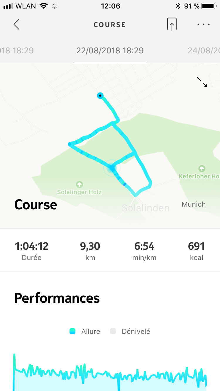 Les 5 kilomètres, c’est bon ! Maintenant, la suite.Puisque le programme d’entraînement de C25K a si bien fonctionné, je continue et charge le 10K Trainer by C25K sur iOS et Android Si vous avez déjà suivi les huit premières semaines du programme C25K, vous pouvez les sauter et commencer à la Semaine 9.Mon objectif : la course du parc zoologique d’Erfurt, organisée le deuxième samedi du mois dans la capitale de Thuringe depuis 20 ans. L’occasion unique de croiser éléphants et girafes sur votre parcours.Cet événement rassemble sept disciplines qui combleront petits et grands. Si vous réussissez à recruter des amis, des collègues ou des membres de votre famille, vous pourrez participer à un relais à 4. Que vous participiez à la course de 200 mètres pour grands débutants ou à celle de 10 km comme moi, vous trouverez ici de quoi vous amuser.La journée est organisée par SSV Erfurt Nord, club sportif local, dans le but de donner le goût du sport et de l’athlétisme aux enfants et aux adolescents.Erfurt étant mon deuxième chez moi, le parc zoologique est pour moi associé à des souvenirs d’enfance très heureux. Pour moi, c’est le parcours parfait, qui me procure la motivation nécessaire pour y arriver.Pour atteindre mon objectif, j’ai troqué ma Steel HR pour la toute nouvelle Steel HR Sport. La version beta m’a permis de tester toutes les nouvelles fonctionnalités en exclusivité. J’étais évidemment très curieuse de la fonction Connected GPS et de l’évaluation de ma condition physique.La première semaine – en fait, ma semaine 9 – s’est déroulée sans problème. J’étais ultra motivée après avoir réussi le 5 km haie et enchantée de porter notre nouvelle Steel HR Sport. Cette montre connectée hybride multisport offre toutes les fonctions nécessaires à une coureuse comme moi. Même si je savais que ma condition physique s’était certainement améliorée au cours des derniers mois, je ne pensais pas qu’elle était si bonne (43 !).