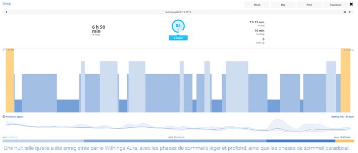Les trackers d’activité qui se portent au poignet comme le Withings Pulse Ox et les montres Activité proposent le suivi du sommeil par actigraphie (l’appareil enregistre les mouvements du corps pour identifier la phase de sommeil dans laquelle vous vous trouvez). Notez que cette technique ne permet de distinguer que les moments d’éveil, et les phases de sommeil léger et profond. Dans ce cas, le sommeil léger est constitué des phases 1 et 2 du NREM Sleep, alors que le sommeil profond correspond parfaitement à la phase 3 du NREM Sleep.