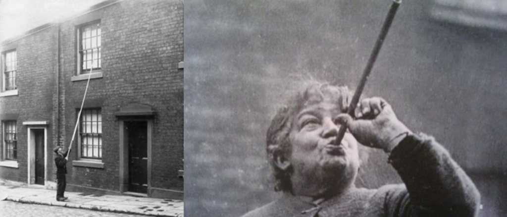 En Angleterre et en Irlande, à une époque où réveils et téléphones étaient encore peu courants, les knocker-uppers, ou réveils humains, étaient chargés de réveiller leurs concitoyens. Equipés d’une longue tige de bambou ou d’un petit bâton, ils se rendaient au domicile de leurs clients et frappaient au carreau jusqu’à ce qu’ils soient réveillés. En échange, ils recevaient quelques pennies chaque semaine. Mary Smith était l’une d’entre eux et réveillait les dormeurs armée d’une sarbacane en caoutchouc et de petits pois.Avantage principalLe premier service de réveil personnel !Inconvénient principalLe bruit stressant sur les fenêtres. Impossible de se faire réveiller au moment idéal de son cycle du sommeil.